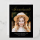 Elegant graduation announcement featuring "Graduate" displayed at the top in a gold foil calligraphy script with a black background (or color of your choice). The design features the graduate's photo with their name, school name, and graduation year shown below. The photo graduation announcement reverses to display optional text such as future plans, graduation party details, etc. The chic graduation announcement is perfect for announcing the graduation of both high school and college graduates.