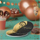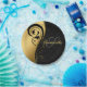 Elegant, gold foil, swirls, black damask, monogram paper plate