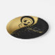 Elegant faux gold foil and swirls, black floral damask pattern Name & Monogrammed paper plate.