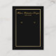 Modern Elegant Gold Frame Earring Display Card - Gold Script and Black