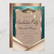 Elegant Gold Frame Diamonds Green Graduation Invitation