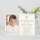 Modern Elegant Gold Frame First Holy Communion Invitation with Cross and Photo.