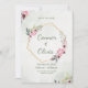 Announce your upcoming wedding with this stunning and sophisticated Save The Date card. This design perfectly blends modern geometry with soft botanical elegance. It features a chic gold hexagon frame cradling a lush watercolor floral wreath with delicate pink cherry blossoms and soft greenery.