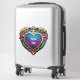 The stick looks amazing. Unfortunately, it would not stick on our suitcase as it was textured. When we found a non-textured (smooth) suitcase, the sticker stuck and looks great. The printing looked awesome.