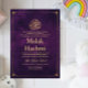 Elegant Gold Frame Purple Baby Islamic Aqiqa Invitation