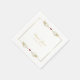 Elegant white wedding napkins featuring an ornate gold frame with a centred red heart featuring the bride and groom's name and their wedding date in gold print.