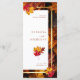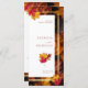 Elevate your wedding reception with our exquisite wedding menu. This stunning design features a pristine white backdrop adorned with a shimmering gold frame and encircled by the enchanting beauty of autumn leaves. The couple's names, wedding date, and venue location are elegantly displayed within the frame, setting the stage for a memorable culinary experience.