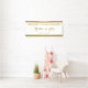 Add this Elegant Wedding Reception Banner to your Reception Accessories. Designed with the text: Welcome To Our Wedding, The Bride and Groom's Names and Wedding Date; and decorated with gold coloured accent stripes top and bottom. To personalise, simply insert your text into our easy template, replacing the sample names and date. Be sure to view the complete Elegant Gold Framed Wedding Collection for matching stationery and accessories.