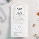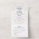 This lovely all-in-one wedding invitation design is simple yet elegant. This design features a classic white background with geometric gem in faux gold foil and elegant typography. The inside of the card features the invitation, wedding details, and an rsvp card that can be detached and mailed. Make sure to put postcard rate stamps on the reply cards.