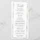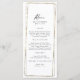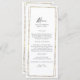 Geometric gold frame wedding reception menu. Long. Toasts on back.