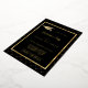 Elegant Gold Foil printing on black with a gold geometric pattern.