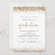 Elegant Black Gold Glitter Graduation White. Sparkly gold faux glitter confetti borders are at the top and bottom and also on the back. Graduation is set in a modern handwriting style. Easily personalise the rest of the text to your own.