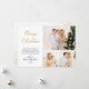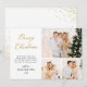 Elegant Modern Calligraphy Script 3 Photo Collage Christmas Cards. This festive simple minimalist multi photo christmas cards features pretty three (3) grid photo collage, gold glitter confetti, a „Merry Christmas” greeting text which is written in a nice cursive hand lettered swash tail font type in gold and white. On the reverse side glitter confetti corners and pre-made message. Pretty greeting card for your family and friends in Winter Holiday season.