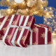Pretty Christmas pattern with faux gold glitter snowflakes and pink & white stripe.