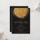 A faux gold foil abstract circle with radiating lines, on a black background, with a sprinkle of glitter. Sophisticated and glamourous. A chic 70th birthday party invite. Order it in print, in digital form, or both print and digital.