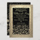 An elegant 50th Wedding Anniversary Invitation. Modern black with faux gold glitter and diamond image design.