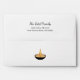 Diwali Celebration envelope, with a black and gold diya flame lamp design. With black customisable text, you add your own lettering. The inside has a gold glitter background, an elegant way to plan your Festival of Lights party or family gathering.
