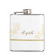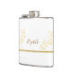 The flask itself is fine. It’s a cheap flask, obviously bought in bulk, however am prepared to overlook that. Given that it is a personalized item, I would have liked to have seen gift boxing instead of the generic packaging. Terrible printing, and/or quality. It’s a cheap, tacky vinyl. It is not cut straight and is also applied in a way that it is overhanging the bottom, causing the glue to catch on items and it will eventually roll and tear, damaging the wrap.
