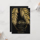 Glamourous faux gold glitter palm frond on black with your holiday Christmas party details in chic lettering on - INSTANT DOWNLOAD or PRINTED - invitations. MATCHING items in our collection.