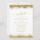 Elegant Gold Glitter Script White Christmas Party. Available digitally and printed. A touch of sparkle with faux glitter gold border is on each side top and bottom on a white background, and the word “invited” is in a stylish script with swashes. Keep the spaces each end of this text to maintain the swashes. Easily personalise the text to your own details. You can also change the text and background colours via the customise further option if you wish.