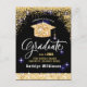 Elegant Gold Glitter Sparkling Graduation Party postcard. Celebrate your graduation party with this elegant and festive gold glitter sparkling luxury style invitation card featuring beautiful handwritten calligraphy . All the texts are pre-arranged for you to personalise easily and quickly with your own details.