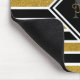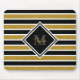 This modern mouse pad features an elegant trendy design with faux gold glitter, black and white striped pattern. Personalise it with your name in a gold script font and a monogram in grey.