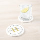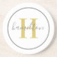 Elegant Gold Gray Round Monogram Script Coaster