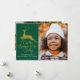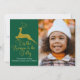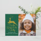 Elegant Gold Green Reindeer Christmas Family Photo Holiday Card