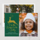An elegant gold reindeer leaps over the Christmas words Tis the Season to be Jolly on this beautiful green holiday card. Classic elegance with a pretty deer over gorgeous calligraphy and your family photo filling the front of this festive greeting card. Add another photograph on the back along with the year.