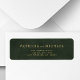Wedding couple names simple minimal elegant dark emerald green and faux gold typography wedding return address label.