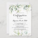 This elegant gold greenery calligraphy confirmation invitation is perfect for a simple religious event. The design features hand-drawn gold and botanical green eucalyptus leaves, inspiring artistic beauty.