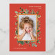 Elegant Gold Greenery | Red with Photo Foil Holiday Postcard