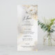 Elegant and modern watercolor floral peony design Wedding MENU. Gold, grey (grey), black watercolor colours. Marble / agate stone aquarelle wash. Any time of year, season. Easy templates to edit. See collection 'EVELYN'