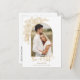 Elegant gold outlined hand drawn style spray of roses and foliage with arch photo template and editable text fields. Back features a complementary floral graphic and additional text fields.