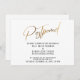 This simple suite's distinction is due to the modern, handwritten script font used for accent phrases. In this piece, the elegant script was used to create a graphic depicting the word "Postponed". It has been embellished with a faux-metallic gold effect for added festive flair. Use the template fields to add your personal details and make this modern design your own. The solid background can be changed to any colour you prefer. Please reach out with any special requests or for customising assistance. // 151 //