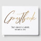 This simple design features an elegant modern handwriting font used to create an image that reads "Guestbook". The graphic was embellished with a faux-metallic gold finish. Use the template fields to add your personal details. The background can be changed to any colour you prefer. // 151 //