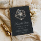 Notify guests of your upcoming destination, beach, or tropical island wedding with these beautiful summer save the date cards featuring a faux gold foil hibiscus flower illustration on a rich, soft black background. Elegant white script and block lettering displays your wedding details (names, wedding date, location, and website).