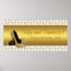 Extra large gold swirls and gold glitter high heel shoes womans birthday party banner. You can personalise this elegant gold high heel shoe party banner with your choice of background colour, text in the font style and colour of your choice.