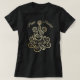 This pretty holiday shirt features an artistic retro stylised image of a gold Holiday tree. The script at the top on either side says Happy Holidays in matching gold. Elegant and festive!