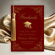 Elegant Gold Ivy Grad Cap Burgundy Graduation Announcement