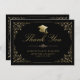 Send an elegant thank you card to your family and friends for their thoughtful graduation gifts. This design features an illustration of a faux gold graduation cap on the front with a border of gold ivy on a black background which reads, "Thank you" with your name, school, and class/year below to personalise accented by a gold flourish divider. The back of the card has a custom message and signature. Designed by Susan Coffey.