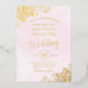 This beautiful wedding invitation features both gold pressed foil printing on a marbled pale pink background. The beautiful design has lacy script calligraphy with floral lace filigree in the corners. Stylish, elegant, sophisticated, and chic, this invitation is fancy and glam. The perfect choice for elegance, style, and class.