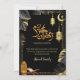 Traditional Islamic elements like the golden lanterns (Fanous), the crescent moon and star, and a Holy Quran on a Rehal stand add a spiritual touch to this high-end aesthetic. The spacious black center provides the perfect high-contrast backdrop for your personalized event details. Ideal for Iftar dinner parties, Eid celebrations, or Islamic community gatherings.