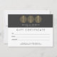 Coordinates with the Elegant Gold Leaf Trio Logo on Dark Grey Template by 1201AM. A trio of faux gold leaf circles creates an eye-catching and modern identity on this customisable gift certificate template. Art and design © 1201AM CREATIVE
