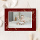 Elegant Gold Leaves 2 Photo Christmas Family Card. Gold Stars Red Christmas Happy Holidays Card