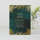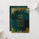 Elegant Gold Leaves Velvet Green Save The Date Wedding Invitation. This beautiful invitation features elegant golden typography and golden leaves on a velvet green background. You can customise it by pressing the (Personalise) button. If you want to customise it more then goto (Click to customise further) option.