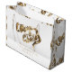 Elegant Gold Look Script Pattern White Christmas Large Gift Bag