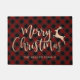 Elegant Gold Merry Christmas Black & Red Plaid Doormat