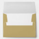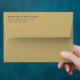 This wedding envelope features a minimalist design with centred text on a plain, elegant gold background. The layout is clean and modern, emphasizing simplicity and sophistication through ample negative space and a focus on legibility. The typography is sans-serif, offering a contemporary feel that complements the formal tone of the design. Perfect for couples seeking an understated yet stylish way to send their wedding invitations, this envelope conveys elegance and clarity in every detail.