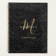 Elegant vintage black floral botanical pattern planner with a custom monogram in gold classic serif typography and name in white modern san serif typography.